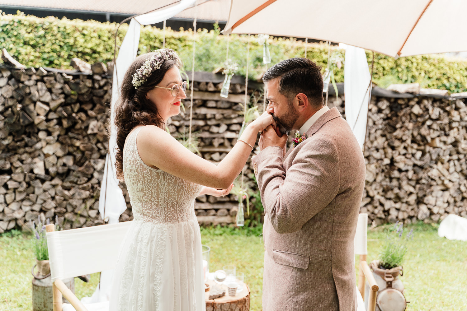 Nach einem weiteren Gewitter nutzen mein Hochzeitspaar und ich die Zeit für Paarbilder und später dann noch für die Gruppen- und Familienbilder. Mir ist immer sehr wichtig hierfür Zeit einzuplanen. Mit der gewissen Vorbereitung geht das auch in der Regel flott. Am Ende sind diese Bilder unter Umständen nämlich sehr wertvoll.